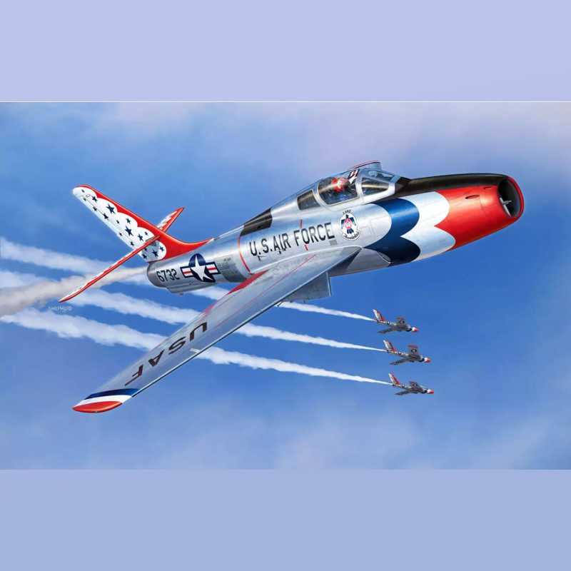 The Thunderbirds are the USAF Air Demonstration Squadron and have been entertaining people for over 65 years. The squadron was formed in 1953 using the straight wing F-84 Thunderjet. Then they transitioned to the swept wing F-84F because it had excellent cruising characteristics and predictable handling. In addition to the Thunderbirds, the F-84F was sold to many countries around the world. It even saw service during the Cold War.